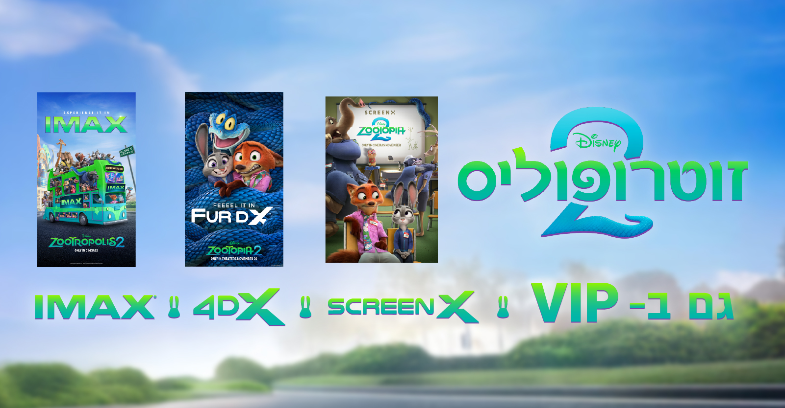 אולם ה-4DX – הצטרפו לכל הרפתקאות ג'ודי וניק עם אפקטים מוחשיים:  רוח, מים, תאורה, וריח  – שיכניסו אתכם לאווירה! 🌪️💦